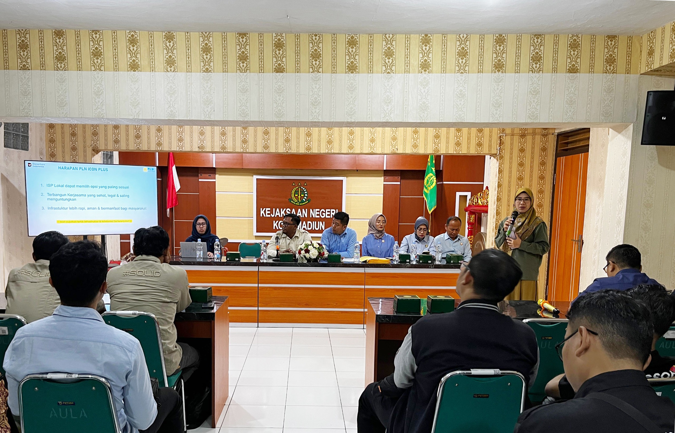 Madiun, tintajatim.com – PLN Icon Plus melalui SBU Regional Jawa Bagian Timur menggelar audiensi dan sosialisasi bersama Kejaksaan Negeri Kota Madiun sebagai langkah konkret memperkuat aspek hukum dalam pengelolaan aset infrastruktur ketenagalistrikan, Selasa (23/09). Kegiatan yang berlangsung di Kantor Kejaksaan Negeri Kota Madiun ini difokuskan pada penertiban internet service provider (ISP) lokal yang memanfaatkan jaringan dan tiang listrik secara ilegal. Wilayah Madiun ditetapkan sebagai pilot project implementasi kerja sama tersebut.
