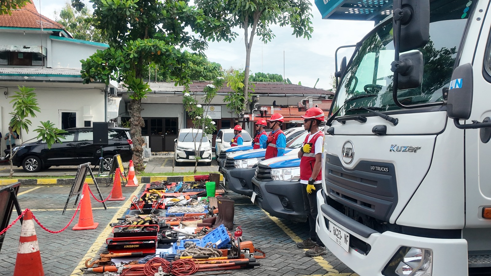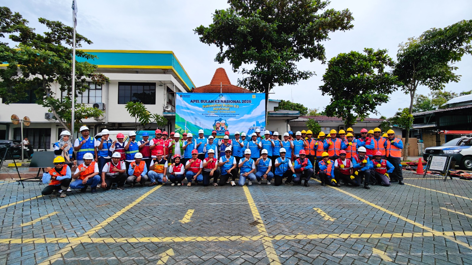 Apel Siaga Bulan K3 Nasional di PLN UP3 Mojokerto diikuti oleh Manajer UP3 Mojokerto, jajaran Asisten Manajer, Manajer ULP, Team Leader Teknik, Team Leader K3L, petugas Pelayanan Teknik (Yantek), PDKB (Pekerjaan Dalam Keadaan Bertegangan), serta seluruh mitra kerja PLN.